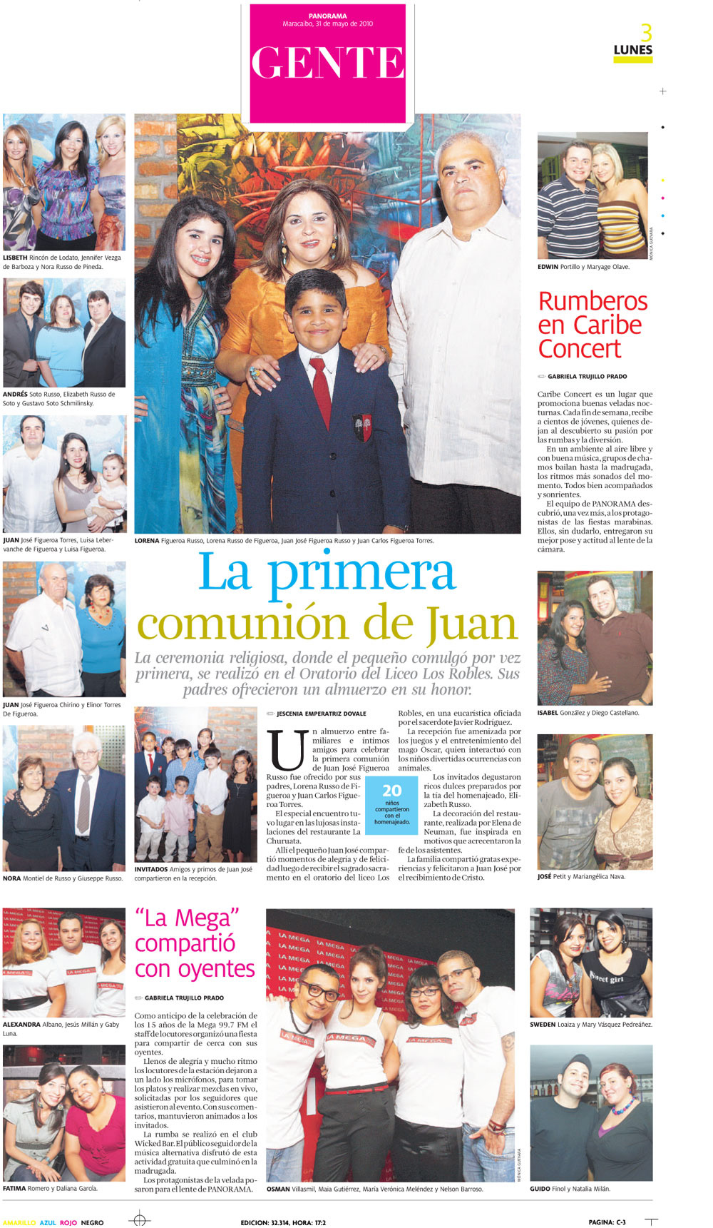 Diario Panorama, sección "Gente" publicado el 31 de mayo de 2010